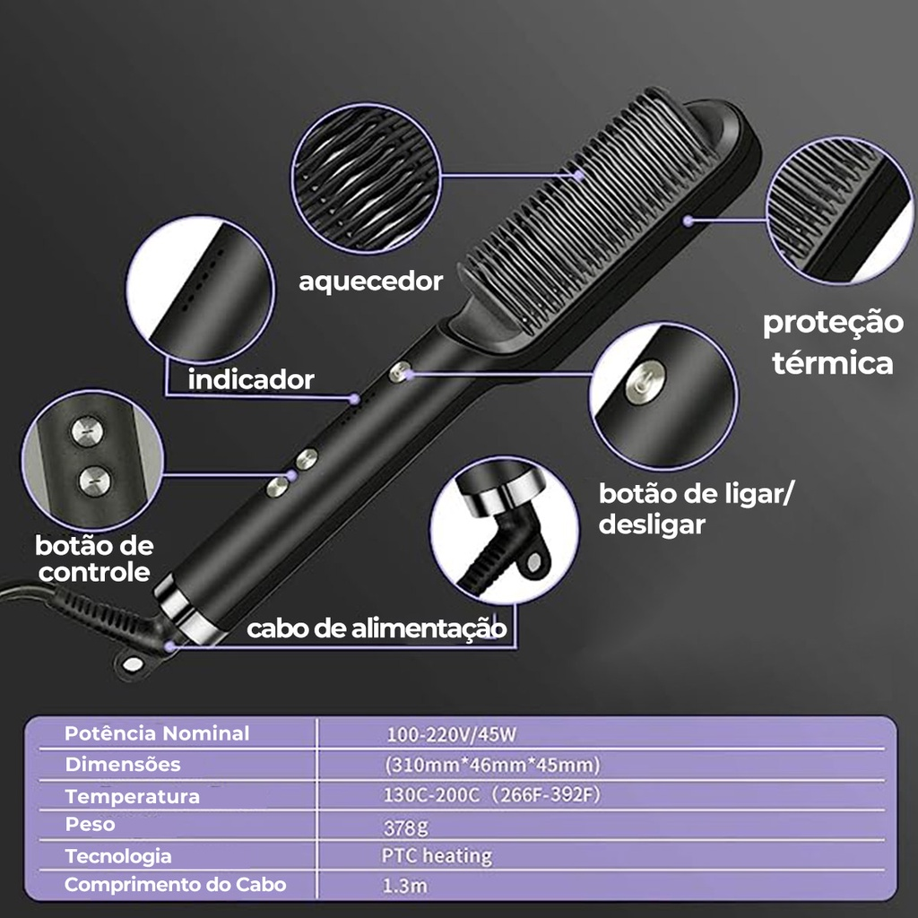 Escova Alisadora Bivolt 5 em 1 - Alisa, Hidrata, Modela, Alinha e Anti-Frizz | Bivolt