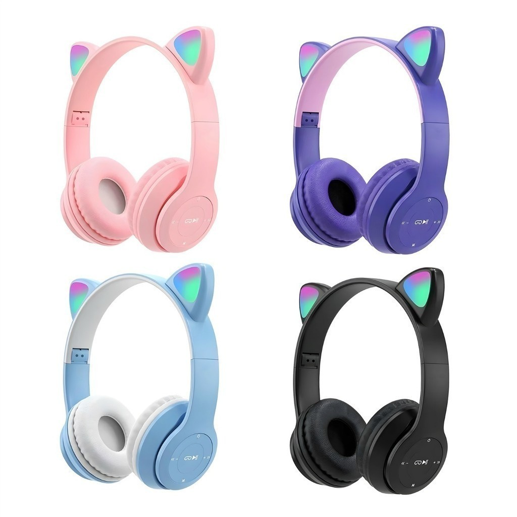 > Fone de Ouvido Bluetooth com Orelhas de Gatinho entrada para cartão de memoria, entrada auxiliar e rádio FM