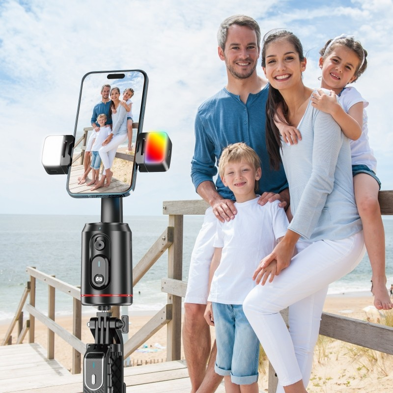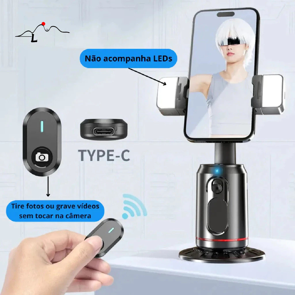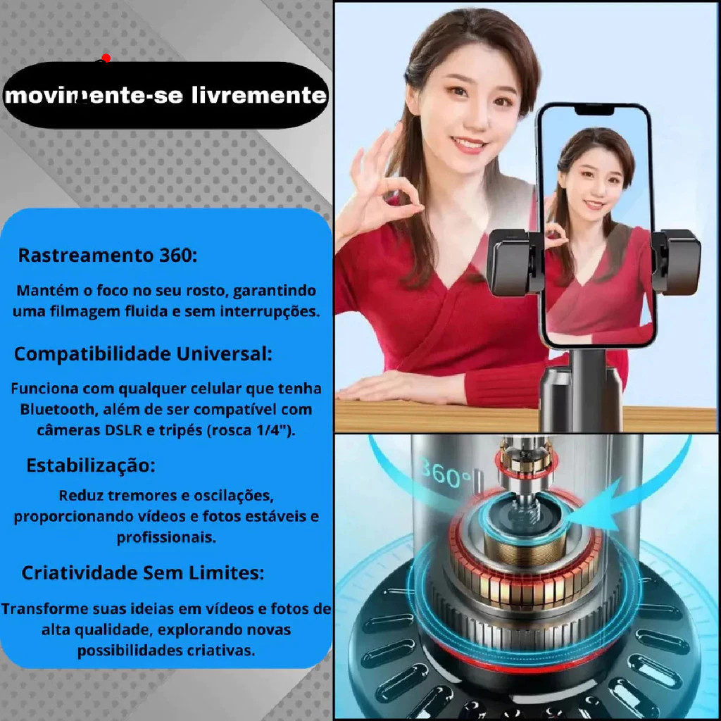 Rotação 360°: Gira automaticamente para manter você sempre no centro da imagem.