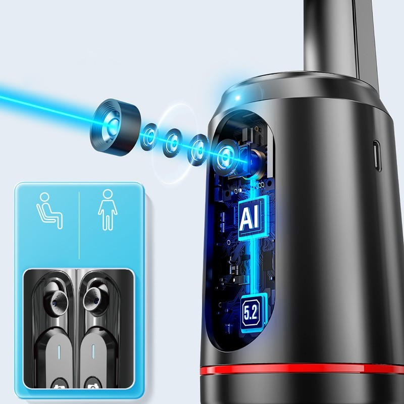 Rastreamento Automático Inteligente: Detecta e acompanha o movimento do rosto ou corpo em tempo real.