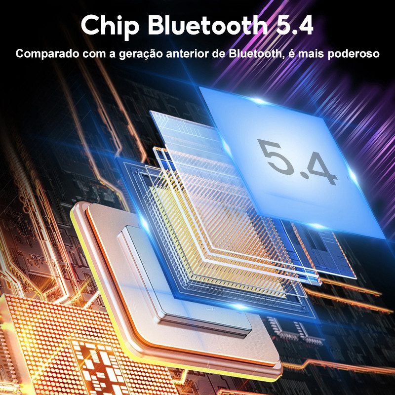 Equipado com o mais recente chip Bluetooth 5.4, eles garantem uma conexão sem fio mais estável, mais rápida e poderosa em comparação com gerações anteriores do Bluetooth. Isso significa menos quedas de sinal e transmissão de áudio mais suave, permitindo que você fique a até 15 metros de distância do dispositivo conectado sem comprometer a qualidade do som.